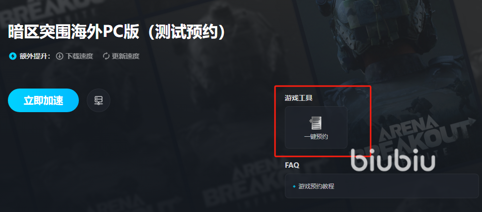 目前暗区突围PC版本并没有上线,大家还不能玩儿,不过可以选择下载biubiu预约游戏,虽然这只是一个加速软件,但是也是给大家提供了预约服务的,大家点进输入游戏名称就可以搜到相应的板块,后续pc上线也可以在这使用服务,非常的方便,新手小伙伴操作起来也很快速。