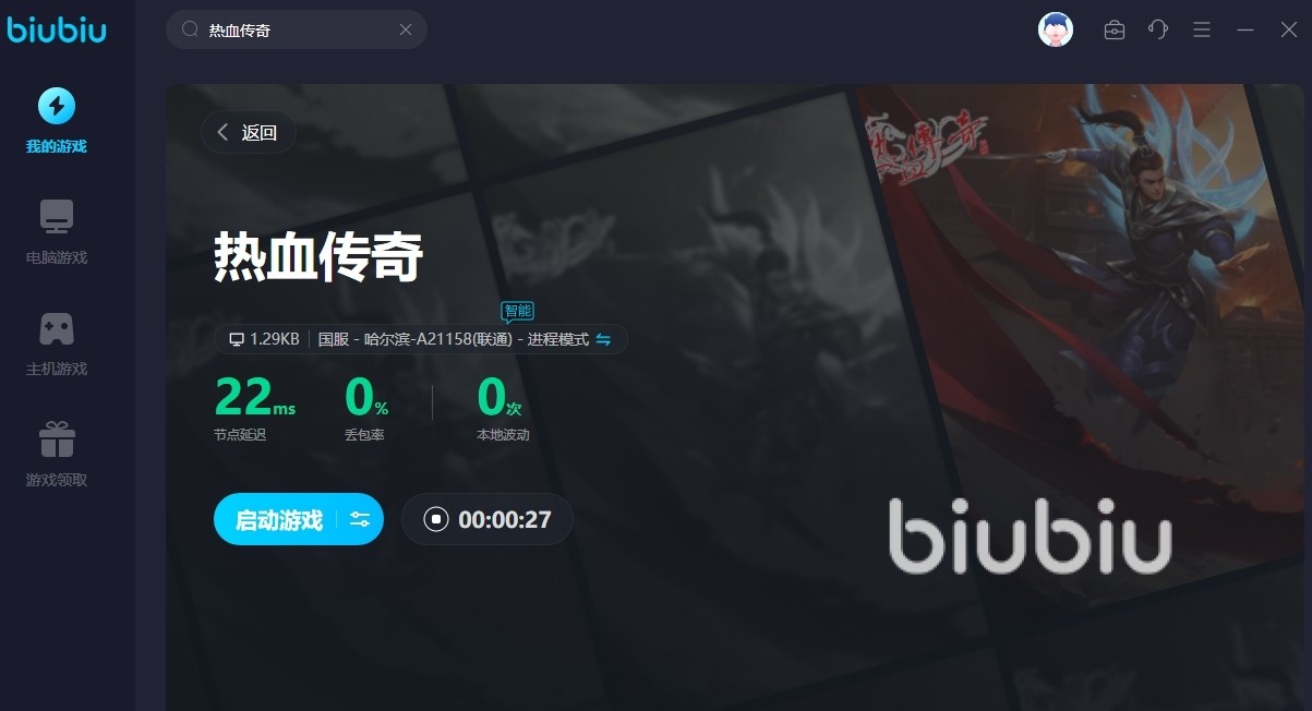 有关热血传奇掉线无法重连怎么办的内容,小编今日就讲解到这里啦,可以根据上方的操作方式来进行玩游戏,使用加速器可以让玩家们在游戏的过程中不会出现白屏、卡顿、掉线的情况,进入界面时就可以看到加速世界,当然如果数字走的快,数值就会更高一些,游戏也就更稳定,想要玩这款游戏的小伙伴们快来下载此款biubiu加速器吧!