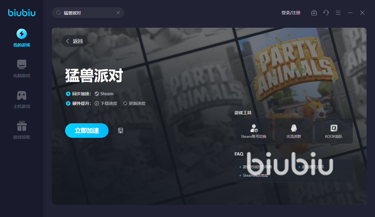 猛兽派对这款游戏现在已经在多平台上线了,受到了大量玩家们的喜爱。不仅仅是国内,就连国外的众多玩家也都已经被这款游戏所征服。 游戏中的动物模型十分精致可爱,仔细观察甚至能够看到口腔中的细节。游戏官方制作团队也为这些动物们制作了精细的头像,玩家们可以在游戏中同时体验到竞技对战的刺激和可爱动物带来的心灵治愈。游戏对战玩法被分为了多人对战以及多人合作。而在多人对战模式中,卡顿和跳屏出现的频率也与游玩人数成正比,为了避免这种情况影响游戏体验,可以尝试通过使用biubiu加速器对问题进行解决。