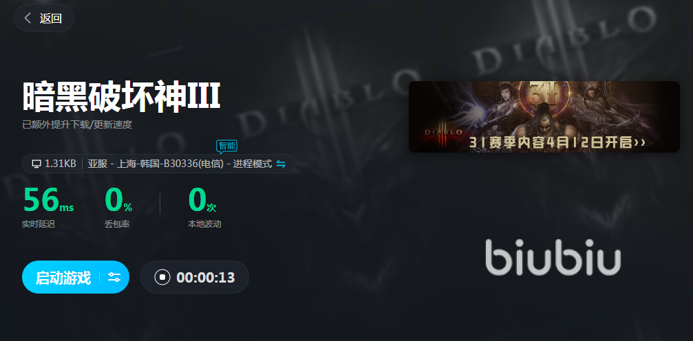 想要一口气把副本刷个痛快,不想总是被卡顿干扰,就来使用biubiu加速器吧,软件拥有暗黑破坏神3多个端口游戏资源,既有电脑版本的也有主机版本的,大家有加速需要的话直接在软件里就能启动。