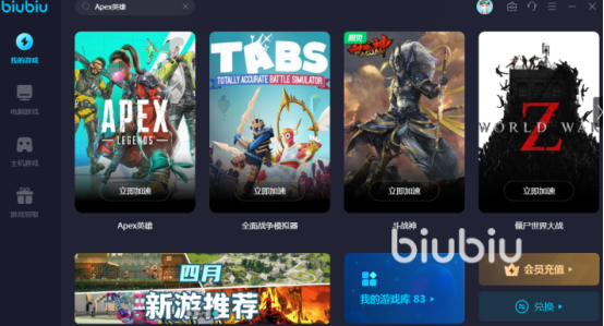 成功下载了以后还能享受如今官方推出的免费赠送加速时长这样的活动,新用户注册登录就可拥有24小时的游戏免费加速时长,直接对自己喜欢玩的游戏进行加速即可。兑换码福利是新老用户都可领取的,一共可让用户享受三天的游戏免费加速时长,具体领取的方法需要玩家正确输入兑换码【biubiu不卡顿】就可以了,在输入的时候一定要小写输入biubiu。