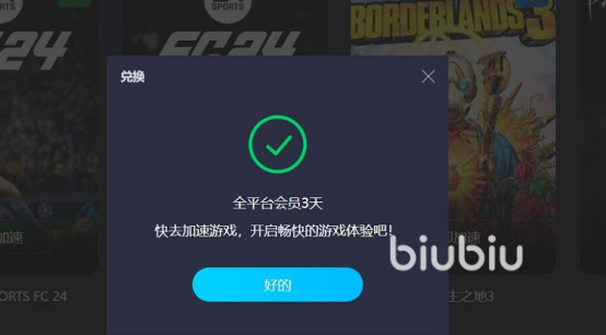 如果还没有使用过biubiu加速器的玩家,不妨趁着如今的福利免费体验一下。因为现在新用户只要注册登录,官方就会赠送24小时的游戏加速时长,也可通过新老用户都可领取到三天游戏加速时长的兑换码福利,只需要玩家正确输入兑换码【biubiu不卡顿】就可以了。由于这种活动并不是经常推出的,大家一定要及时的领取。
