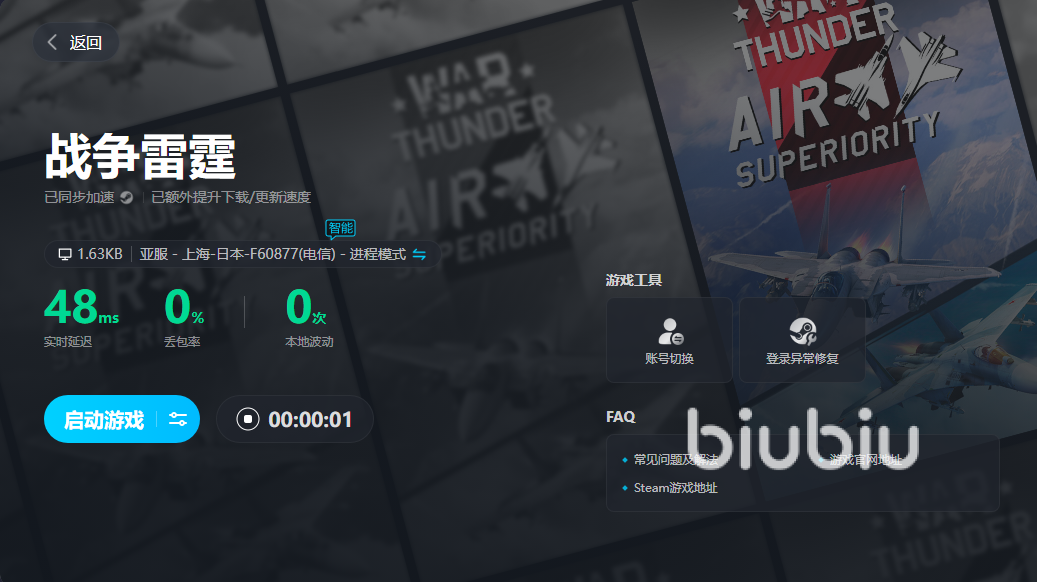 2024年05月10日 20:04 来源:虫洞义比雕战争雷霆是一款军事模拟游戏,它提供了一个真实的战场环境,让玩家可以驾驶各种历史上的飞机、坦克和舰艇进行战斗。那么战争雷霆加速器哪个好用呢?游戏以其高度的现实主义和细致的车辆模型而闻名,同时支持多人在线对战,让玩家可以与来自世界各地的玩家一起体验战争的激烈。没有一款好的游戏加速器,玩家是很难体验到这款游戏极致的刺激的,所以小编推荐的biubiu加速器大家不妨一试,各种掉帧卡顿情况都能解决。