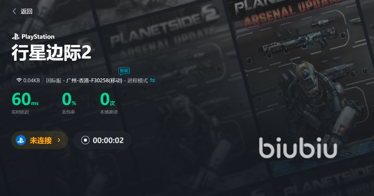 即开即停的模式绝对不浪费大家一秒钟的时间,搜索游戏行星边际2直接加入到我的游戏列表当中,当想要开启游戏时间直接启动游戏同步加速即可无限畅玩,任何的卡顿闪退基本不会再出现,让你沉浸式的体验游戏带来的刺激和快乐同时不被任何情况所干扰,线路和节点都是biubiu根据当前的网络环境智能筛选和更替,绝对不让玩家在游戏的过程当中受到任何打扰。