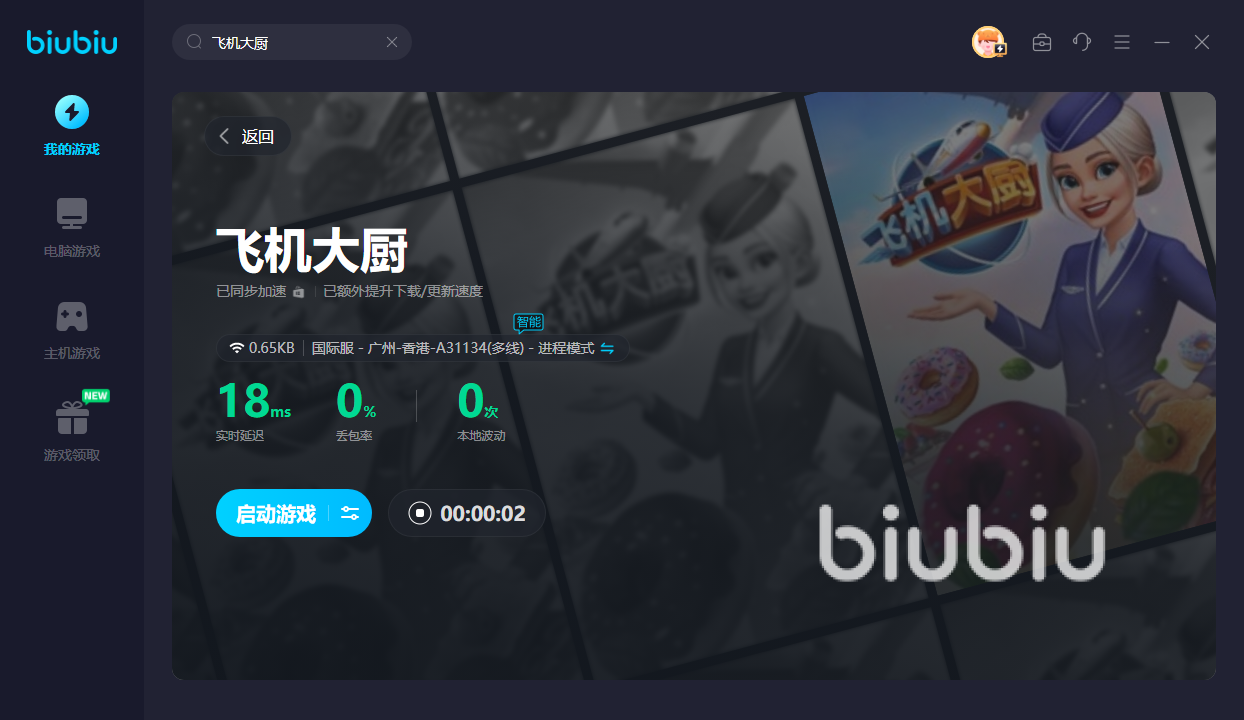 由于飞机大厨PC端目前仍旧未有国服,若是想进入不同区服的飞机里。就要使用biubiu,加速之后才能有打开飞机的大门,让你有资格成为一名厨师。新用户的话可领取24H的免费加速,此外新老用户均可使用【biubiu不卡顿】,就能领取三天免费加速。让你的大厨之旅可以走得愈来愈远,而不是中途坠机。烹饪的过程中网络一卡的话,就会弄错配方,制作出错的食物。有了加速器后,就能放心地调制各种美食,让你爱上厨房,并提升自己的厨艺。