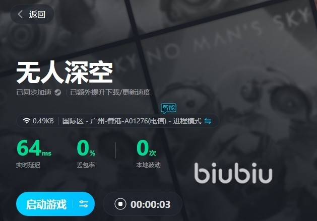 然而,即便在不断更新中,无人深空的高画质运行下仍有可能会出现闪退的问题,这时biubiu的派上用场了,该软件可利用多年积累的加速技术和经验,通过动态节点的模式去针对玩家的网络方面去进行优化,保障客户端到服务器的通信过程流畅,如此也就不用担心会有丢包的情况发生。