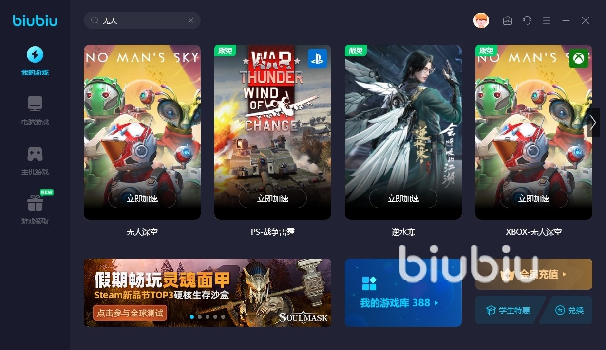2024年05月11日 20:46 来源:玄冥正卡比兽无人深空这款游戏还是非常有特点的,同时里面的玩法上十分的丰富,能让大家获得不错的游戏体验效果,下面小编主要和大家介绍下无人深空加速器推荐,因为有许多的朋友反馈自己在游戏体验的过程中遇到了卡顿和延迟十分高的情况,而想要去解决这个难题,小编觉得各位可优先考虑去通过biubiu来进行稳定和优化。