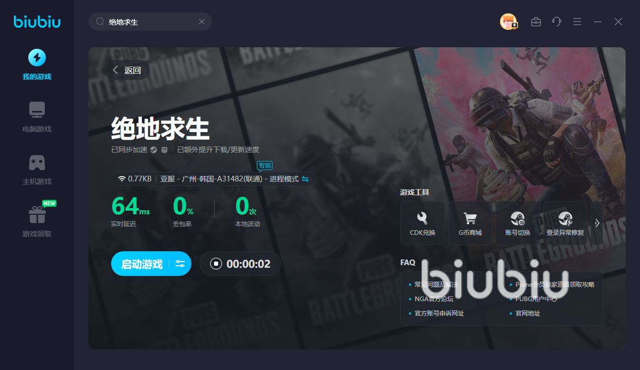 想要真正开启战争的话,还需借助biubiu,即可优化网络后登录。因为绝地求生目前仍旧未上线国服版本,就得提速过后才能有资格进入战场。新用户的话还能领取24H的免费加速,此外新老用户都能使用【biubiu不卡顿】,即可享受三天免费加速。若是竞技过程中太卡的话,很容易被对手找到你的破绽并击杀。此刻有了biubiu后,就能解决卡顿问题,不管什么操作都能轻松完成,让对手不能发现你的弱点,才能及时地脱身。