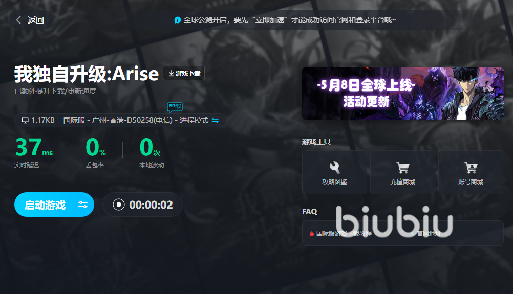 现在大家看完小编的介绍之后,应该知道了在玩我独自升级崛起的时候,用什么加速器最好了,当然是选择用biubiu加速器了。用上之后,就能够感受到稳定的网络,告别卡顿,尽情进行激战了。