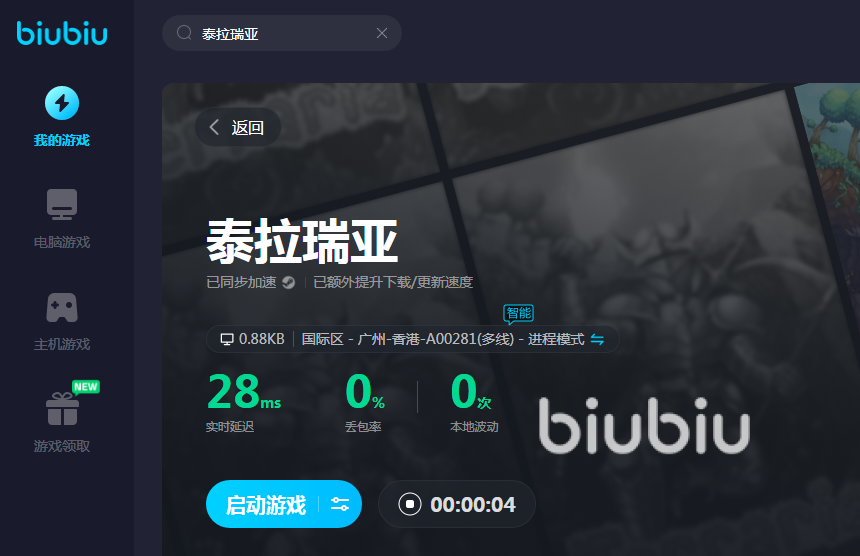 在众多软件当中,小编推荐大家用的是biubiu软件,它的优点非常多。本身软件就直接收录了泰拉瑞亚游戏,并且版本齐全,想要玩主机板还是电脑版的都可以,直接使用软件就能加速登录游戏。现在加入biubiu的新用户还能享受24小时免费加速的福利,这样大家就可以尽情畅玩平台里的游戏了。想要体验更多加速时长的新老用户还可以通过兑换码【biubiu不卡顿】再获得三天免费加速。