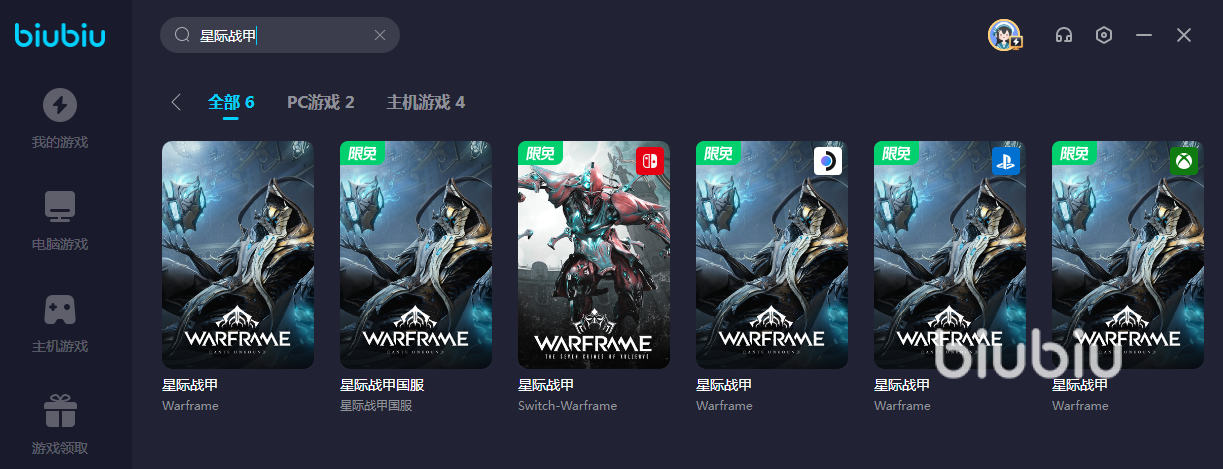 星际战甲有非常多版本,除了端游以外它还被移植到了主机上面,不管大家玩什么端口的游戏,都能用biubiu来加速,并且软件现在限时开放端游国服、xbox主机、Switch主机等多个端口版本的免费加速权限,不需要大家花钱充值就能享受加速服务。