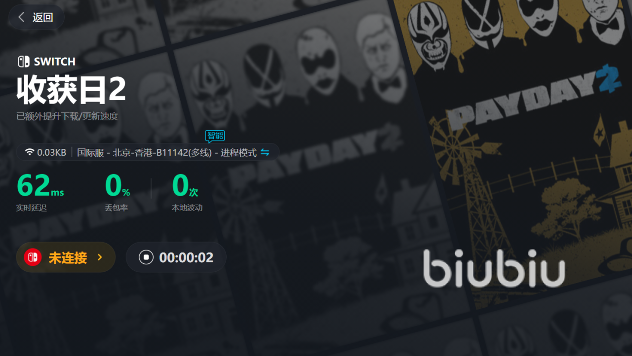 动态的游戏场景下总是能够遇到不一样行动设定,所有场景当中都会随机出现随机卡点和罕见事项。也正是因为这个环节深受广大用户的喜爱,特有的联机模式,可以享受四人组队增添更多的快乐,但是当前的网络不是那么稳定的话是会影响到游戏的正常运行的,不如来尝试下biubiu的这款加速器。
