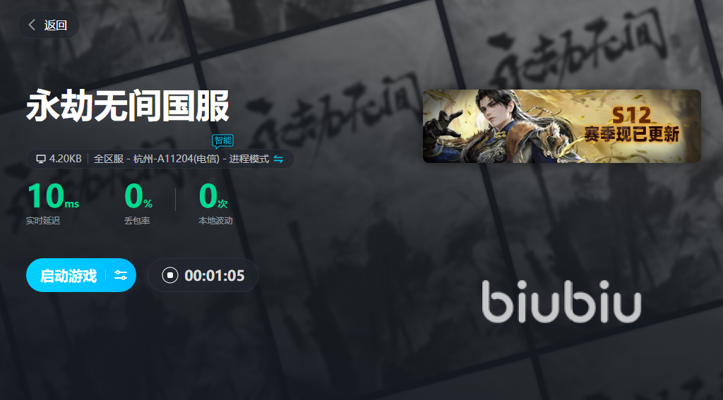 在《永劫无间》中,玩家需要面对各种复杂的战斗场景和敌人,在游戏里面人越多我们的画面就会出现一定的波动。所以小编推荐给大家的biubiu就能通过稳定的加速效果和独家路由技术,为玩家提供了强有力的支持。这样一来在多人作战中,biubiu加速器也能够保证我们玩家的网络速度的稳定连接,让玩家的游戏体验大大提高;在单人竞技中,也能够帮助玩家快速释放技能,拥有更快的反应敌人的进攻手段,提高玩家的生存能力。不管在什么情况下,只要玩家使用了biubiu加速器都能够比没使用过加速器的玩家要流畅很多。