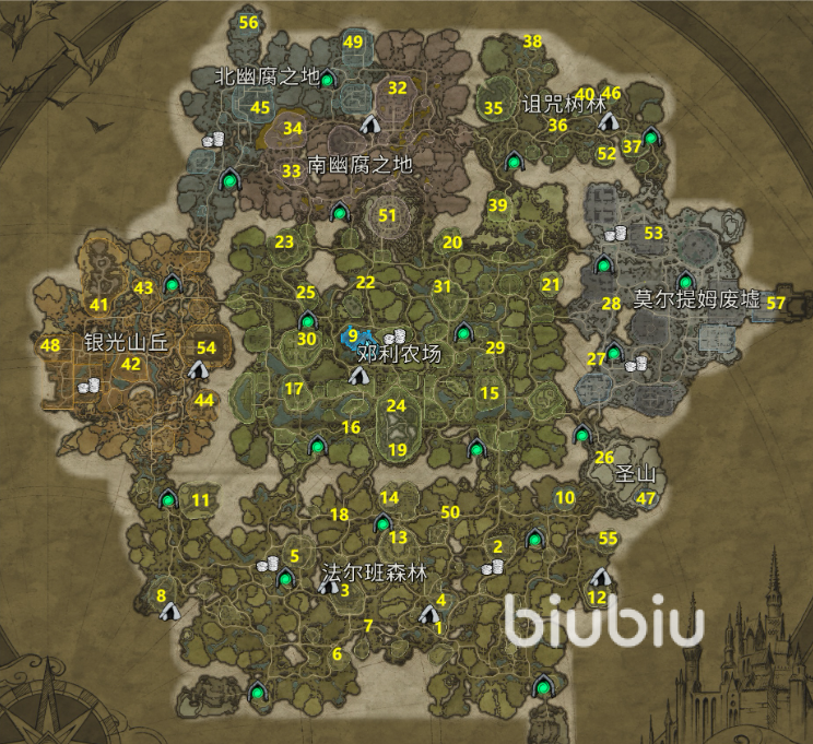 游戏中的BOSS分布在不同的地图区域,包括森林、城堡、墓地、洞穴等,每个区域都有其独特的BOSS,他们的位置相对固定,但也有一些BOSS会在特定的时间和条件下出现。比如在森林区域就有包括白色头狼、冰霜弓箭手基利、碎石斗士埃罗尔在内的老怪,他们通常都会在森林的南部、东部和中部地区出没。