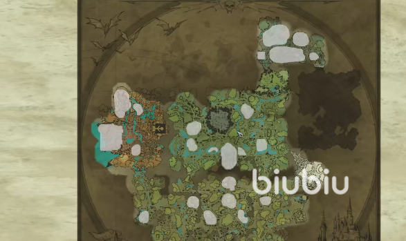 我们可以通过城堡的宝座对仆从进行指派任务,但是地图里并不是所有地方都是仆从可以去的,必须得在下图高亮的区域内活动,并且每一个地方所能获得到的资源是不一样的。所以大家在派人出去干活之前,应该要知道自己所缺的资源,这样才知道应该派遣他们所去的位置。