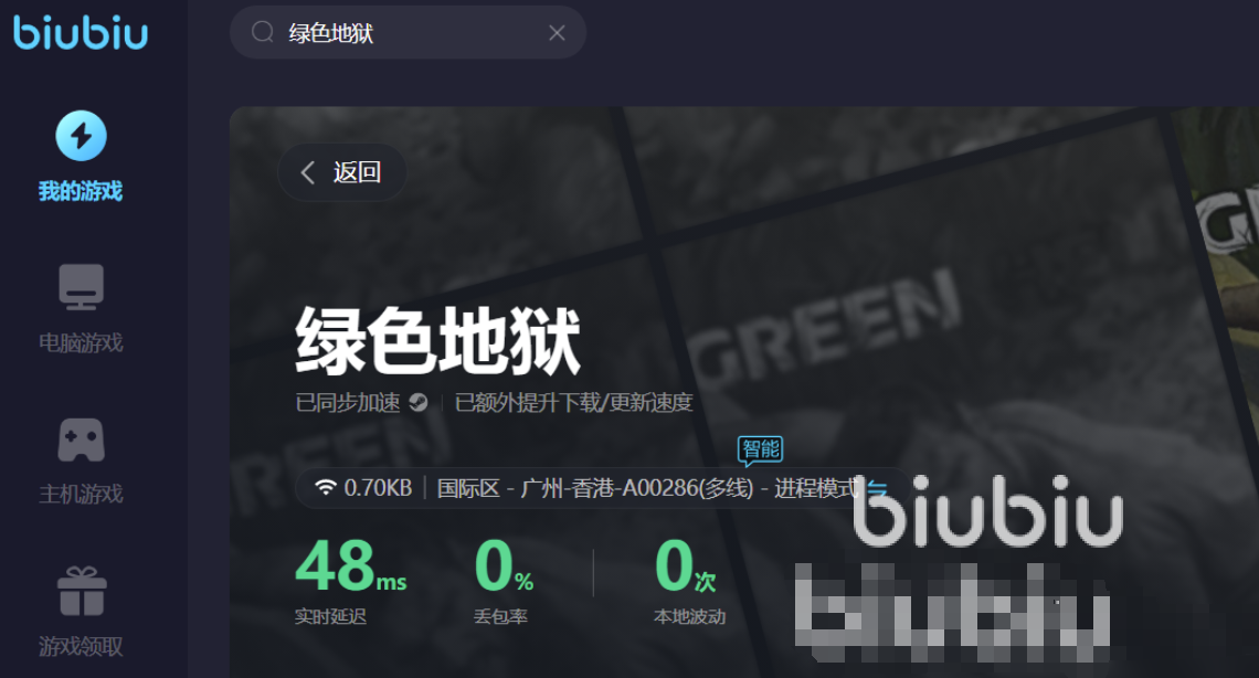 顺应时代的发展,不仅仅是端游可以通过biubiu来提供加速服务,手机游戏以及各大主机游戏都是可以通过biubiu来优化网络的,点击上方的摁键就可以成功获取下载,而你只需要在加速器上搜索绿色地狱游戏名称找到相应版本启动加速即可。