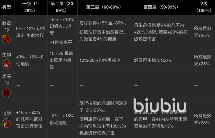 之后可以再点出流氓血型,增加暴击几率和移动速度,对于任何武器和流派都很适用,暴击触发后还有50%的几率让敌人所受到的所有伤害增加,想打出高额输出这个血型还是很重要的。