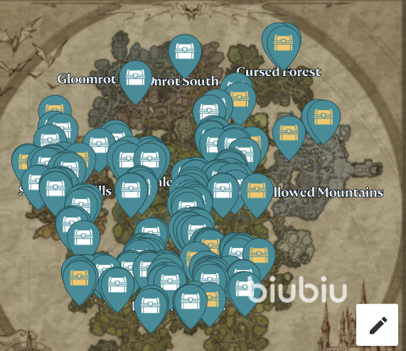 另外想要在刷新前把箱子开完也比较难,本作有154个普通宝箱和33个黄金宝箱分布在地图的各处,你走到哪都会有意外收获,大致的分布情况你可以根据插图来对比。如果你比较喜欢在野外乱逛,不妨也顺便去找找它们。