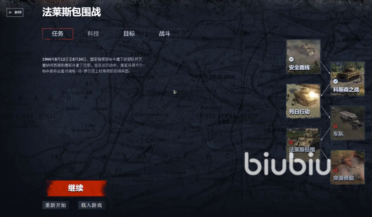 第四小节讲的是大家必须突破德军的封锁,护送车队前往盟军被困的高地。第五小节讲的是盟军几乎将德军彻底困在了法莱斯包围圈中,杨中尉必须完成合围,确保敌军无法从中逃脱。最后一节讲的是德军的许多兵力深陷法莱斯包围战的泥潭,盟军的胜利只是时间问题,但仍有数支德军部队顽强地抵抗,其中就包括驻扎在费勒的萨尔茨及其麾下的部队,卡尔中尉将率领装甲师消灭他们的宿敌。