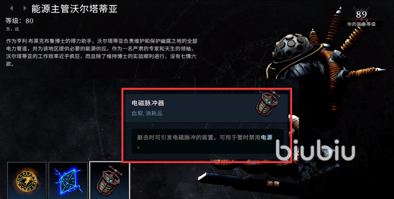 这个物品无法通过制作获得,需要挑战能源主管沃尔塔蒂亚拿到,之后玩家在挑战游戏中的二号头目,长子亚当时会用到这个脉冲器,其余场景下这个物品都是无法使用的。