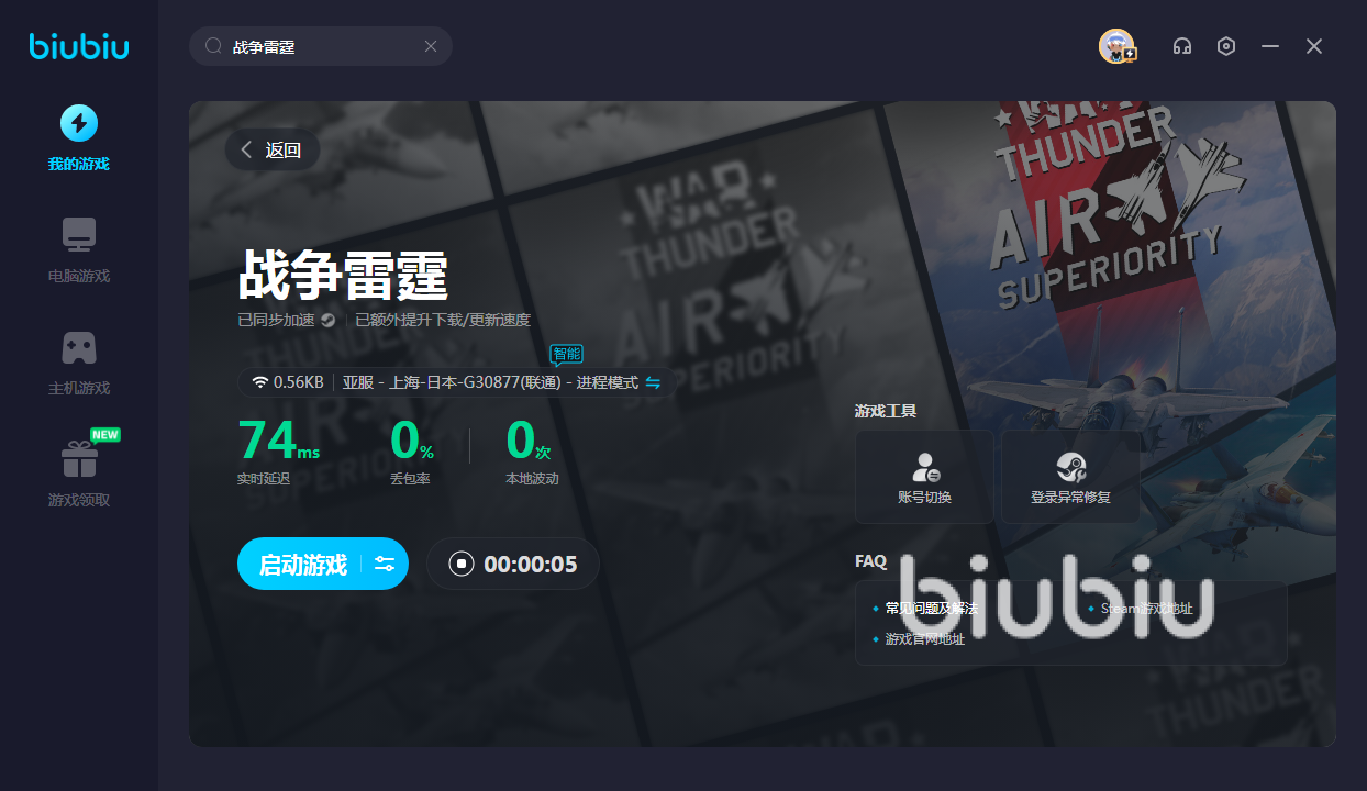 Biubiu就是今天小编给大家带来的战争雷霆加速器下载推荐,相信大家在看完这款工具的使用方法以及性能和其他福利之后,也会产生非常大的兴趣。现在就可以点击上面链接直接下载体验,按照小编介绍的去操作,可以给自己喜欢的游戏进行加速,获得很流畅的体验。