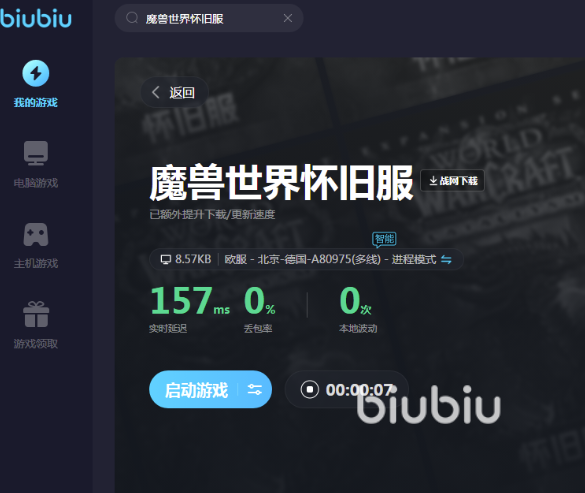 稳定的网络能够让大家在游戏的时候不受到任何外界的打扰,魔兽世界就相当于一个大型的真人社交互动平台,玩家们通过组队去完成不同的副本,而biubiu的启动可以通过优化的方式为大家持续提供稳定网络,不管是游戏的哪一个环节都是不会被网络问题所干扰的,各项数据清晰可见,同时还可以通过延迟数据手动更替节点。