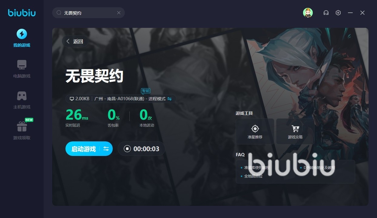 2024年06月03日 14:23 来源:流星欲大舌头作为战术射击玩法的游戏,很多朋友对于其可是相当的喜欢,因为里面拥有丰富的射击和策略元素,体验感上表现还是非常不错的,对于无畏契约加速器究竟应该如何去选择,小编觉得去使用biubiu就相当的合适,它不仅足够的稳定,还能让大家获得稳定且畅快的加速效果,有效解决网络波动导致的掉线和卡顿等问题。