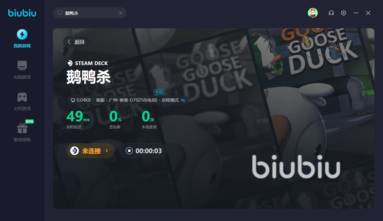 2024年06月03日 14:23 来源:宁静飞椰蛋树对于鹅鸭杀这款游戏,目前有许多的朋友很是喜欢,主要也是因为它里面的玩法元素颇多,同时能让玩家获得不错的体验效果,而社交元素也是得到了很多朋友的认可,对于鹅鸭杀加速器究竟应该如何选择,也是广大用户所关注的问题,毕竟游戏的体验想要稳定,去使用biubiu可是非常关键的,各位有想法不如就来看看吧。