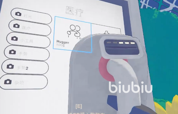 游戏开局的时候我们向左边望就可以看到一个摄像机,右边则是摆放着手电筒。我们将这两件物品各拿走一个,往前走会有一个售卖机。我们可以在这里用获得的收益来换取一些表情装饰和探索工具。如果资金充足的话,那么可以在售卖机这里翻到医疗区域购买一个除颤器。除颤器没电到敌人的时候是不消耗电量的,并且在使用时也会给我们一个向前冲的动力。一切都准备好后我们在潜水艇里面集合,关上门后按下开关确认按钮即可开始冒险,到达地点后我们可以便通过频繁使用除颤器来不断地向前快速冲刺。