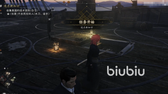 去到夹板的另外一端,同样行走至底下二层,在桌子上获得一份美国的技术资料。在走到桌子的路上,我们会遇到一个患有痨病的船员,与他交流即可解锁后期剧情的一个选项。之后在夹板上探索,打开宝箱即可获得最后一份美国的技术资料。