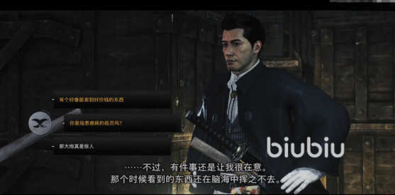 任务完成后我们会看到一段剧情对话,即与泽村保佑和泽村谕吉的对话。在本段剧情中,如果你在前置任务中选择不杀死任何人,福泽谕吉会简单对“我”和泽村保佑进行感谢。然后福泽谕吉会说:“……不过,有件事还是让我很在意。那个时候看到的东西还在脑海里挥之不去。”此时会根据前面的三个任务出现三个选项:1.有个好像能买到好价钱的东西。2.你是指患痨病的船员吗?3.那大炮真是惊人。1和3的选项均不会触发后续剧情,只有2选项会推动剧情发展:福泽谕吉决定去美国一趟。