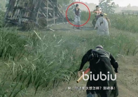 在接受任务以后系统会指引我们来到标记的位置,到了之后会看到三个npc,两男一女,里面有个女人正在被两个男人骚扰。这个女人需要我们的帮助,我们过去处理掉两个男人,帮助她以后,她会告诉我们老人女儿在哪里。