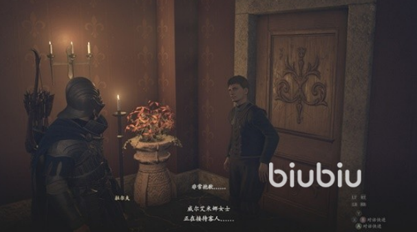 如果没有在老板娘这里触发也没什么关系的,还可以选择回家睡觉推进时间,然后再来找老板娘。这时候老板娘会出现在房间外左手边的房间,会有一个npc跳出来说老板娘在忙,玩家只要到老板娘的房间里面,然后通过门上的偷窥孔看一看,就能触发任务阴沉的蔷薇了。