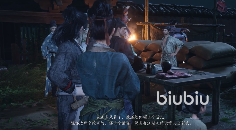 接着第二波剧情来了,晚上怎么都找不到红线,跟周围的NPC互动之后才知道,原来跑商的好汉摆了个擂台,彩头就是江湖人的物品,红线听到立马就交钱了,让主角去参加。