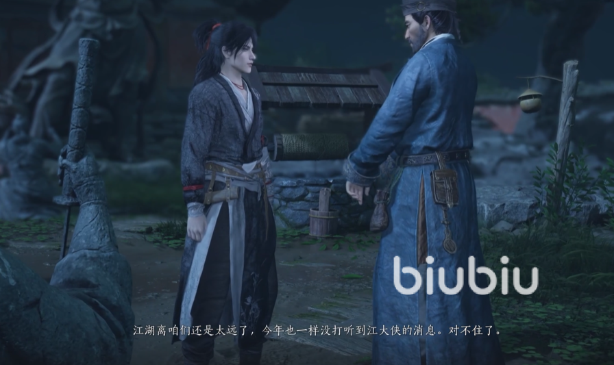 接下来就进入跟广叔的剧情了,先是可爱的红线来了一番小钱钱没有了,但是想要买话本,广叔慷慨解囊的剧情。接着就是主角跟广叔的对话了,原来广叔一行人是游商,商队的脚步遍布大江南北,在三年前,开头的黑衣男子也就是江叔离开之后一去不复返,主角的养母就不让他出去了,但是主角很想知道江叔的消息,就委托广叔留意一下,但江湖离普通人的生活太远了,根本没有什么消息带回来,这也让主角更加向往外面的世界,寻找江叔的踪迹了。