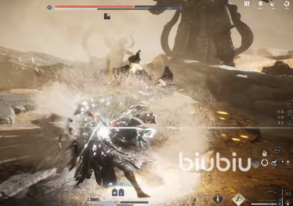 此外武学系统中允许玩家自由切换武器,但武器也有熟练度,每种武器都会有不同的连段效果,每次攻击命中敌人都会给对手带来一定的硬直,不同武器可能硬直效果不同。受击后玩家会损失真气,真气你可以看做一般游戏中的架势条,一旦被打光将暂时被暂时虚弱,并且会暂时失去招架敌人攻击的能力,直到真气慢慢恢复。
