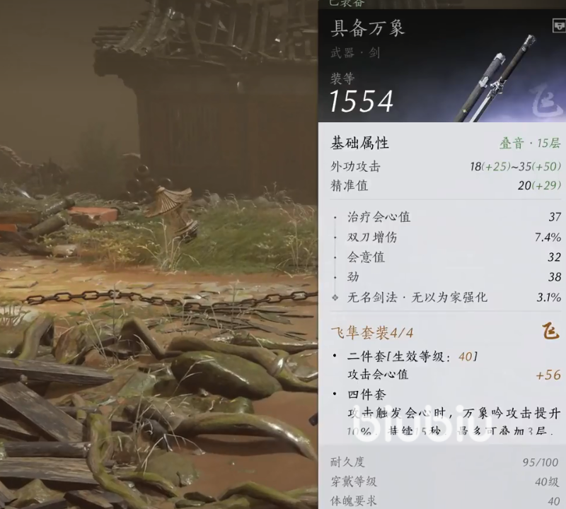 每个装备都有着最低的等级要求以及装等,或者说是装备评分。对于不同的武器会有不同的词条,一般通用的有效词条有会心,也就是暴击率。还有武器增伤以及治疗等效果,其余几个词条,不同的心法和流派选择所需也有所不同。装备可以通过叠音获进行强化,获得更高的装备数值。