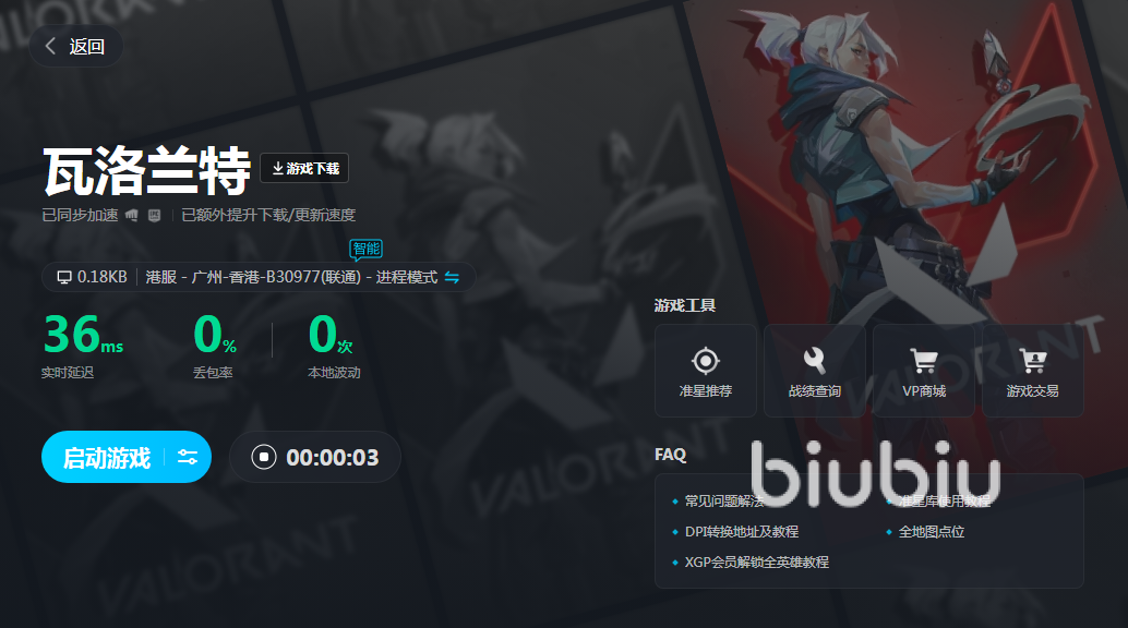 2024年06月04日 15:15 来源:玄冥正卡比兽《瓦罗兰特》作为一款现象级的第一人称射击游戏,游戏里面的快节奏的战斗场景和复杂的角色定制系统吸引了全球玩家的目光。今天为了这款游戏小拜年给大家带来瓦洛兰特加速器推荐。然而,网络环境的复杂性和地域差异导致的延迟问题,往往成为玩家体验的瓶颈。为了解决这一痛点,小编推荐使用Biubiu加速器,它不仅在技术上有所创新,而且在用户体验上也有着显著的优势。