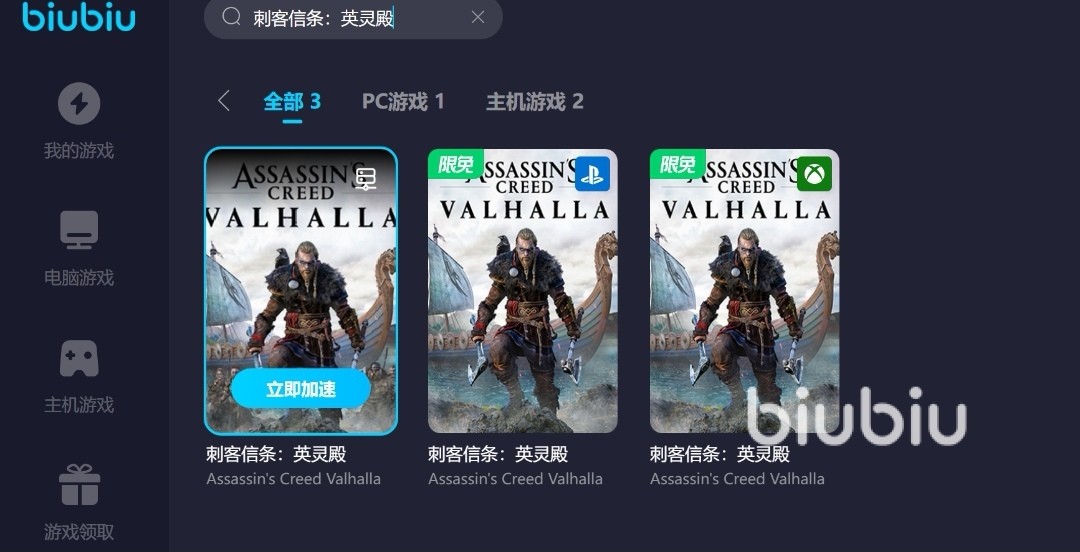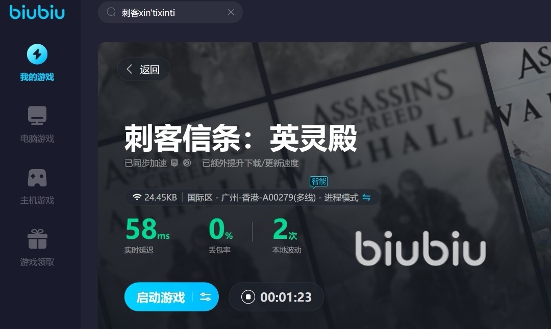 2024年06月04日 15:14 来源:破圣与素利拍游戏的地图非常多样,所成呈现出来的画面都是相当的精美,细节处理非常不错,剧情也是特别丰富的,但是在遇到刺客信条英灵殿闪退如何解决呢?要知道这种大型游戏的运行对网络环境有着较高的要求,然而并不是所有玩家均可以满足,这时候就会用到加速器,小编则很推荐biubiu加速器来帮忙。