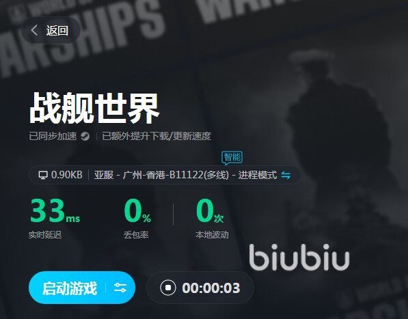 《战舰世界》作为一款主打PVP玩法的海战网游,节奏相对来说比较快,并且网速要求也很高。特别是你在玩驱逐舰的时候,一旦网速卡顿没有扭开炮弹,可能直接就被击沉了。而航母玩家遇到网速不佳也会白送一波飞机,若是玩其余舰种也会因为网络波动没有扭开鱼雷,但如今你可以使用biubiu加速器来优化网速。