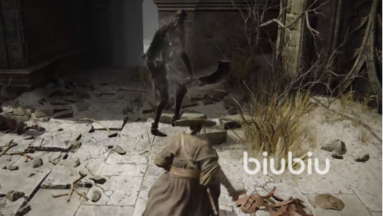 而我们进入幽影之地后,前往西侧会来到塔之镇贝瑞特,在这里我们会遇到很多敌人,而最多的就是黑色鬼魂形态的人类生物。这些敌人身上或多或少都融合了熔炉百相的特点,比如头上长了一对犄角。而在DLC中夜有介绍提到这些怪物,就是角人和勇人的新种族。