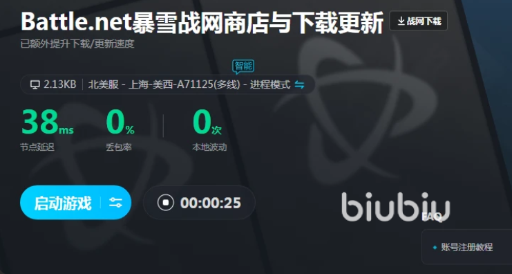暴雪经营了十几年了,旗下拥有的游戏数量是比较多的,比如说守望先锋,魔兽世界的人气极高,这些游戏都是需要去战网平台下载的,而且作为官方平台,对于游戏的介绍以及活动内容都会及时更新,这样玩家们就能第一时间内了解到游戏的资讯以及攻略,但是部分玩家在登录战网的时候,就会出现登录半天登录不进去,又或者是点开游戏没反应情况,可以使用biubiu加速器全面加速,解决无法登录问题,并且新人在注册后便获24小时免费加速,以及新老用户使用兑换码【biubiu不卡顿】可获3天免费的使用时间哦!