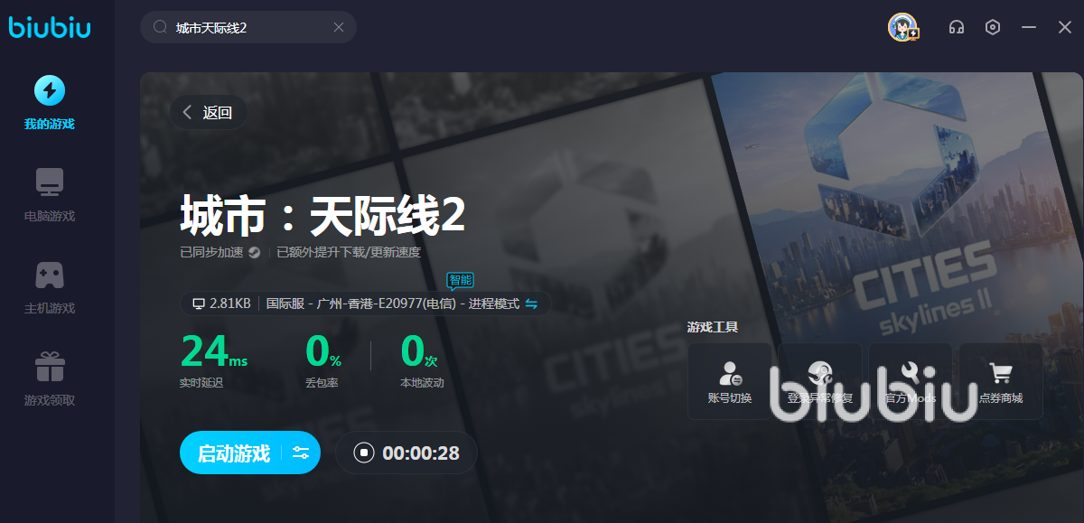 天际线2这款游戏满足大部分玩家对于城市模拟建设的期待,想要好好体验游戏,不想被闪退打扰,那就来使用biubiu加速器加速器吧,效果绝对超乎你们的想象,带来全新的游戏体验。现在加入biubiu的新用户即可享受24小时免费加速,同时还能使用兑换码【biubiu不卡顿】额外领取3天免费加速,老用户也同享兑换码福利,机不可失赶紧兑换。
