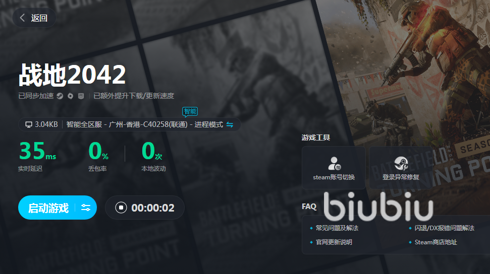 为了助力《战地2042》玩家克服网络难题,推荐大家选择biubiu加速器,在低延迟网络的环境下,能够确保游戏内的数据能快速且准确的传输到服务器,这样在战斗的时候就会显得更加游刃有余。所以无论是快速移动、精确瞄准,还是与队友紧密沟通,biubiu都能为您提供稳定、流畅的网络支持。