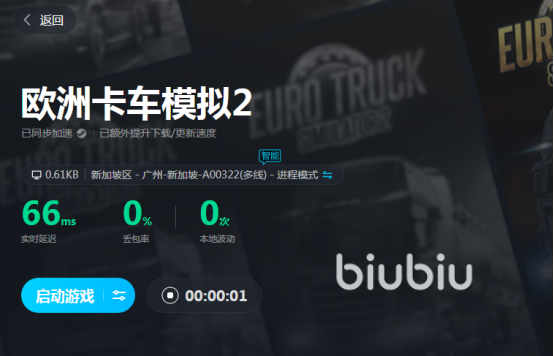 推荐小伙伴们可以试用一下biubiu加速器,它不仅支持多款热门游戏的一键加速,而且还有欧洲卡车模拟2的专项加速界面,只需要在搜索框中输入名字,就能找到并启动。并且平台还提供了大量游戏的实时资讯,玩家们可以自行查看,和其他玩家一起探讨游戏中遇到的问题。