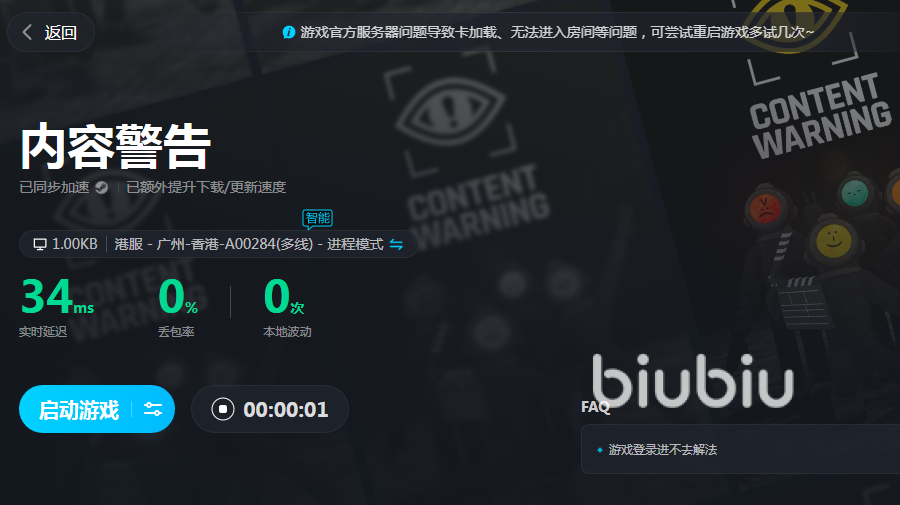 然而由于《内容警告》操作的的复杂特性,网络环境差往往成为玩家们的一大难题。在关键时刻网络的卡顿是可能导致大家错失重要信息,同时影响到游戏的决策,从而使我们输掉游戏。所以使用biubiu加速器是一个明智的决定,这是一款稳定、高效的加速器,能够满足玩家们加速网络的需求。