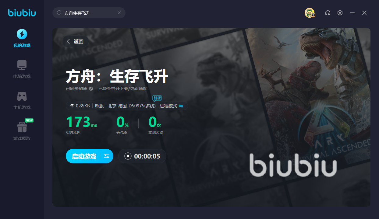 由于方舟生存飞升属于国际性游戏,目前暂时没有国服。所以想要成为恐龙世界中的一份子,宝子们还需借助biubiu。有了它方可开启新世界的大门,并征服各种恐龙。想试试能不能玩的话,新人可领取24H的免费加速。另外新老用户都能使用【biubiu不卡顿】,即可享受三天免费加速。要是游戏途中太卡的话,别说征服恐龙了,自己也有沦为口粮。有了加速器后,就能解决卡顿,让你顺利逃离高等级恐龙的捕杀。