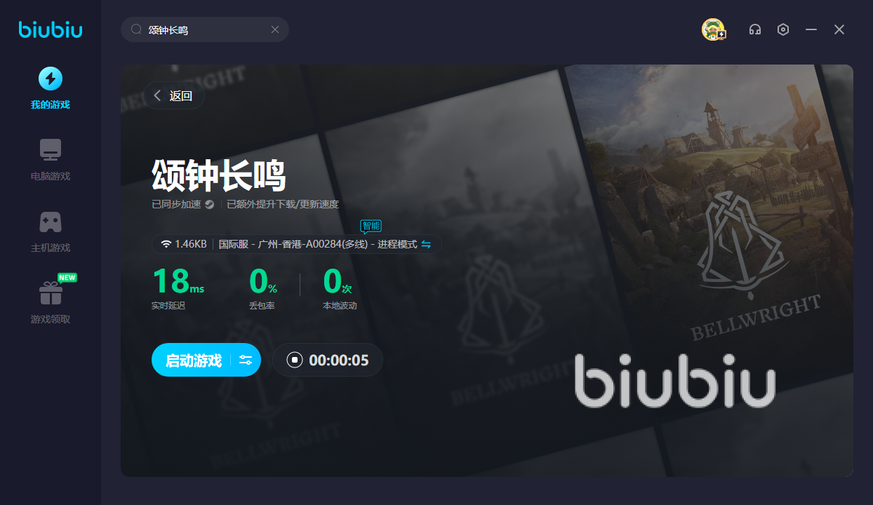 因为颂钟长鸣属于海外游戏,目前暂时未有国服。要想成为其他地域的生存者,就得先使用biubiu。就能获得优质网络,成功登录新的大陆,并结交不同部落好友。想要先试试看加速效果的话,新用户可领取24H的免费加速。此外,新老用户均可通过【biubiu不卡顿】,就能兑换三天免费加速。若是卡顿的话,就很难在这充满竞争的世界存活下去。经过加速后,方可解决卡顿。让你能够拥有在这驻扎的资本,并好好地发育起来。