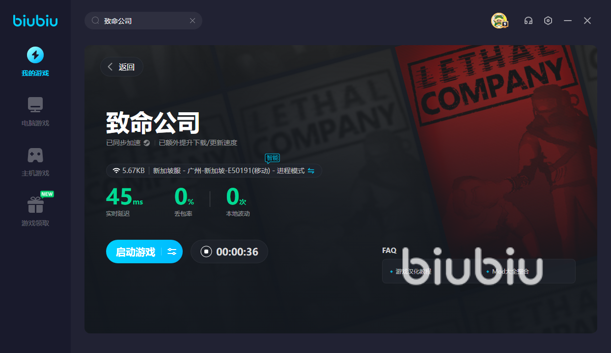 致命公司现在仍旧暂时没有国服,要是想进入其他地方的实验室。宝子们就得用上biubiu,经过合理加速后,方可出现在其他公司的实验室里并展开旷日持久的对决!打算试玩的话,新人可获得24H的免费加速。此外新老用户可使用【biubiu不卡顿】,就能领取三天免费加速。若是游戏中太卡的话,就很容易被突然出现的怪物袭击。这时在加速器的帮助下,就能时刻关注周围的动向并做出及时地应对,让你成功逃离敌人的魔爪。但要是想提升自身实力的话,更需要用biubiu了。因为它能降低延迟,让你迅速操作,击败对手!