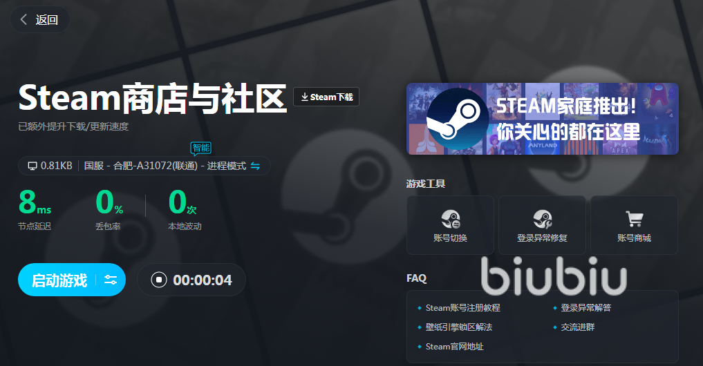 为了确保大家在steam中能够畅享流畅、稳定的游戏体验,强烈推荐打击使用biubiu的加速器。它采用先进的网络优化技术,能够显著降低游戏时网络的延迟问题,还能够减少卡顿和黑屏的现象,让我们的每一次点击都能及时捕捉和响应,猫咪画面变化起来也无卡顿。